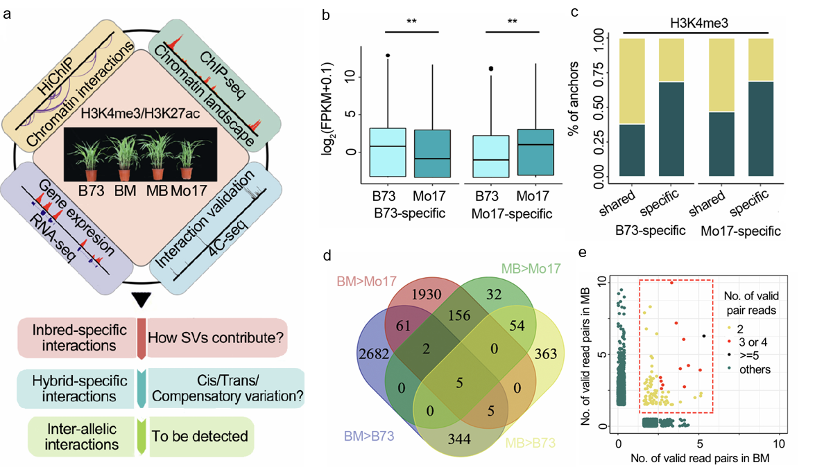 三维基因组是调控基因表达的重要空间结构,空间中染色质的折叠方式和接触方式决定着基因在何时、何地被激活。作物中不同自交系间普遍存在大量结构变异,这类变异如何影响三维基因组构象,并在杂交后代中重组、进而参与杂种优势形成,一直缺乏系统研究。